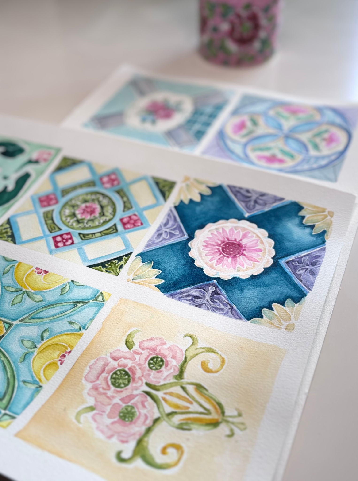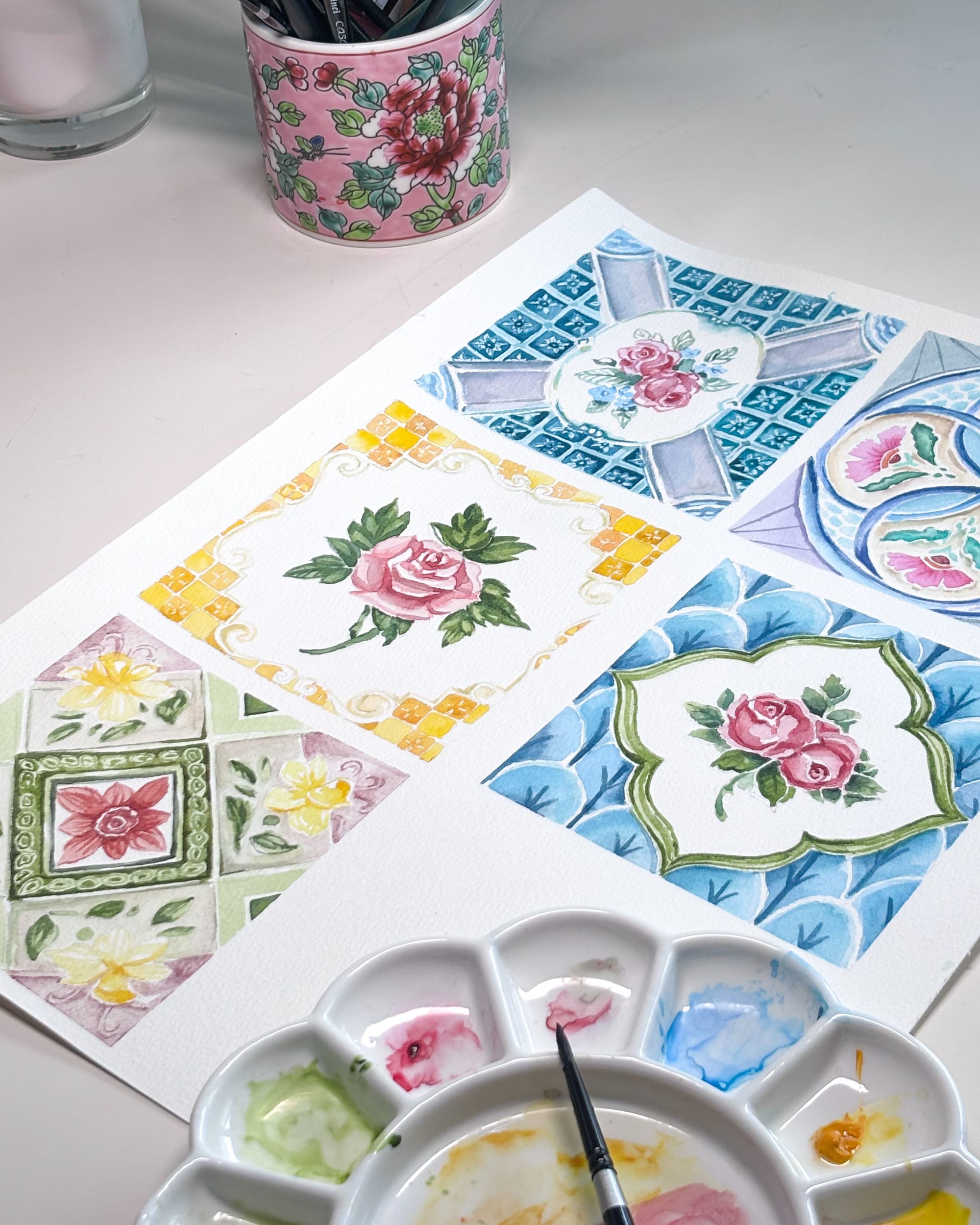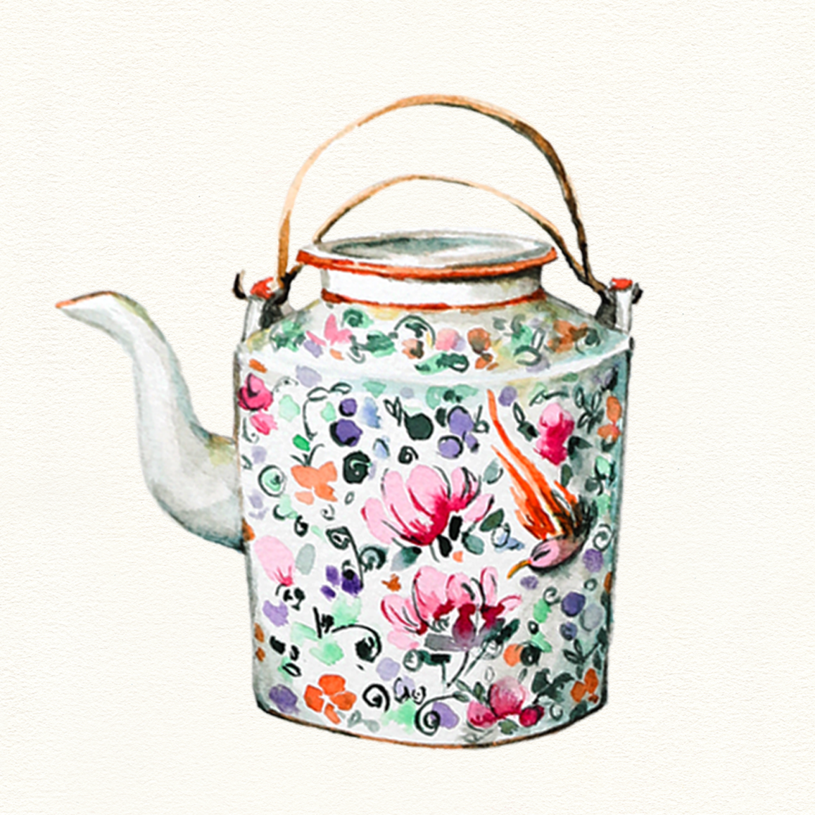 J'aime également mettre en valeur la culture du pays qui m'accueille et tout particulièrement son merveilleux héritage Peranakan, issu de la fusion des différentes cultures malaise, chinoise et indienne. Mon intérêt s'est porté sur la vaisselle aux motifs colorés que l'on retrouve par exemple sur les théières et bols Peranakan.
